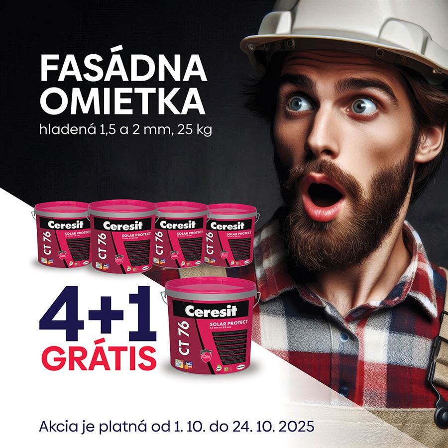 Kvôli trvanlivosti fasády sa odporúča použitie omietky Ceresit CT 76 s hodnotou odrazu svetla HBW viac ako 15, aby sa zabránilo nadmernámu zahrievaniu fasádneho povrchu. Pri použití omietky s HBW pod 15% sa odporúča konzultovať riešenie s technickým oddelením Ceresit za účelom výberu vhodného zatepľovacieho systému. Omietka CT 76 je chránená proti biologickému napadnutiu hubami, plesňami či riasami, zvyšuje odolnosť systému voči ich účinkom.BALENIE:25 kg plastová nádoba