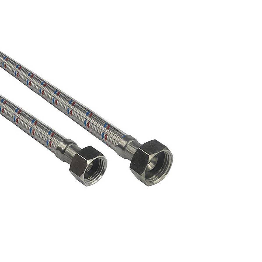 Nerezové pripojovacie hadice na vodu sa veľmi často používajú na pripojenie WC, nádržiek, stojankových vodovodných batérií a iných zariadení. Hadice sú vyrobené z vysoko akostného EPDM s opletom z kvalitnej nereze a s poniklovanými koncovkami z mosadze s vnútorným a vonkajším závitom podľa európskych štandardov ISO 228. Výhodou nerezových pripojovacích hadíc je veľmi jednoduchá manipulácia a montáž. Umožňujú tiež čiastočné pohltenie hydraulických rázov. Na hadice nesmú pôsobiť agresívne prostredie a látky spôsobujúce koróziu. Hadice sú vhodné pre rozvody vody, vzduchu a neabrazívnych a neagresívnych kvapalín s maximálnym tlakom do 10 bar a prevádzkovou teplotou max. 95 °C.Technické parametre:Vonkajší Priemer (Mm): 12Tlak: max. 1MPaMax. Prietok: 30 l/min.Vnútorný Priemer (Mm): 8Oplet: nerez, oceľJadro: guma EPDMDĺžka (Cm): 50Teplota Vody: max. 90°CZakončenie 2: matica 3/8Zakončenie 1: matica 1/2Hmotnosť (Kg): 0,108