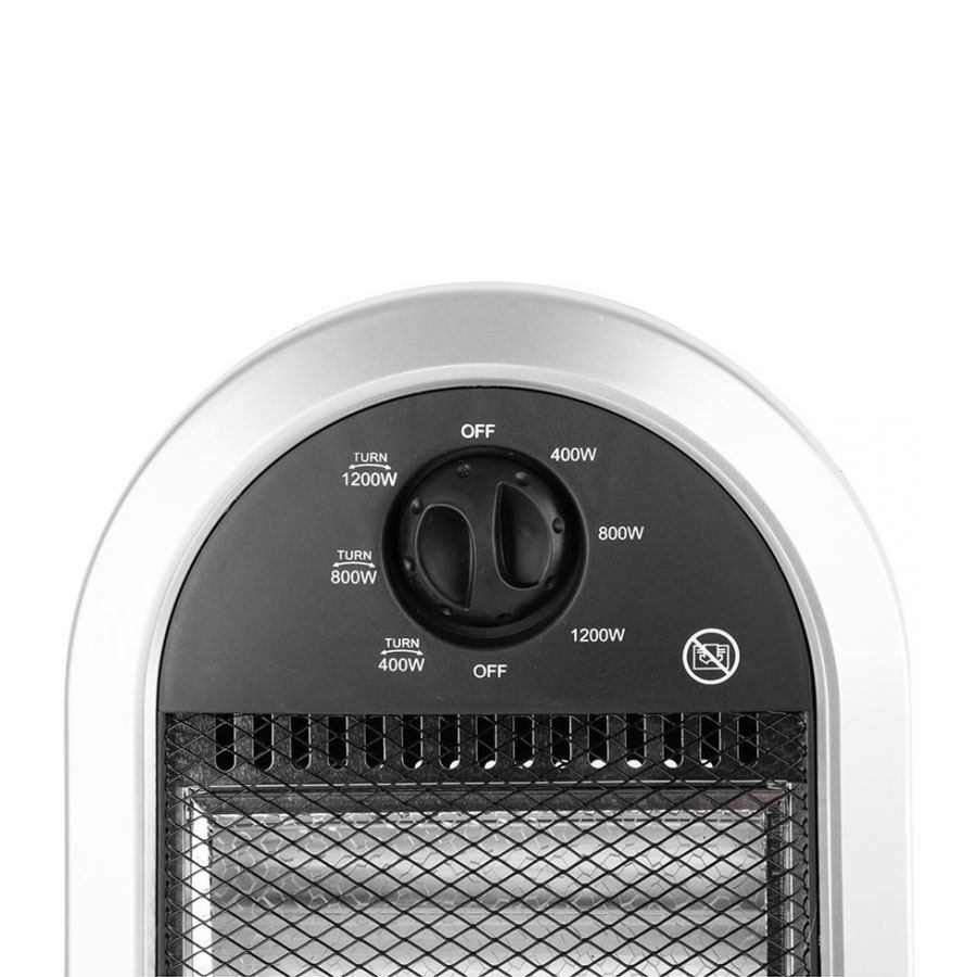 Halogénový ohrievač značky Strend Pro vás udrží v teple aj v tých najchladnejších dňoch. Ohrievač sa vyznačuje tichým chodom, nízkou spotrebou a vysokou účinnosťou ohrevu. Jeho tepelný výkon dosahuje 400 W/800 W/1200 W.Ohrievač disponuje odolným masívnym plastovým telom a ponúka aj možnosť oscilácie v uhle 90 º pre efektívnejšie šírenie tepla do celej miestnosti. Samozrejmosťou je bezpečnostná poistka proti prevrhnutiu. Ohrievač je tiež vybavený systémom automatického vypnutia, ktorý ho v prípade prevrhnutia automatický vypne. Praktická rukoväť umožní jednoduché prenášanie, takže si ohrievač môžete vždy preniesť do inej miestnosti. UPOZORNENIE: Nikdy nezapínajte naraz všetky trubice, môže dôjsť k poškodeniu ohrievača !TECHNISKÉ PARAMETRE: